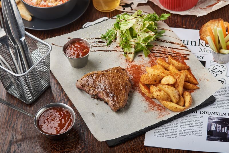 Drunken Duck – це перший арт-паб у Львові, де гості можуть не тільки випити крафтового пива та смачно поїсти, але й оглянути експозицію молодих митців та послухати чудову музику.